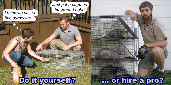 • Another effective way is to trap the armadillos that are on your property. However, please be aware that trapping is not legal in most states and you will have to check on this or risk facing getting into trouble with your local animal control agency. If it is legal to trap them, you can pick up a variety of traps at hardware stores, garden stores or rent one from a wildlife removal agency.